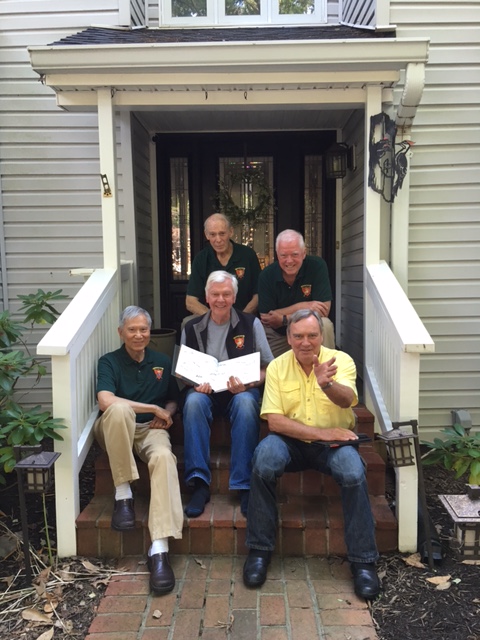 A Special Thanks Mike Wholley, through Andy Vaart, received a great letter of appreciation Major General James T. Jackson after he received a copy of the cruise book. Read the letter here. Arnie Fields, a retired Marine Major General, attended the luncheon that followed our Plaque Commemoration the Marine Corps Museum. In a short but sweet ceremony, he presented Vietnam War Veteran pins to each B Company classmate and family member. He also entertained the group with a rich baritone rendition of "God Bless America"! Editor Andy Vaart Ambushed! Months ago, Phil Norton decided that Andy, the editor and "creator-in-chief" of the cruise book should be honored with a special copy - Phil planned to collect many of our autographs and have the printer insert these custom pages in a copy for Andy. This "signed" edition was made and several of our DC-area classmates appeared at Andy's door at 4:00 pm, July 8. Andy's wife Tracy was a co-conspirator.We have a video of these intruders! https://youtu.be/JmMb6g_qxNA Hays Parks (top); clockwise to Larry Karch, Mike Wholley, Andy and Hon Lee. The Book has been mailed! The cruise book has been printed and mailed - copies were delivered starting June 30. Here is a sample and these are the early reviews: